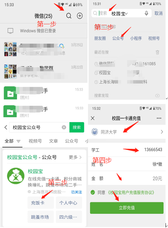 微信支付向一卡通充值时要填写学号/工号/编号和姓名,微信支付与“一卡通”系统会验证持卡人的学号/工号/编号和姓名,如果不匹配,将不能充值,以避免充错。