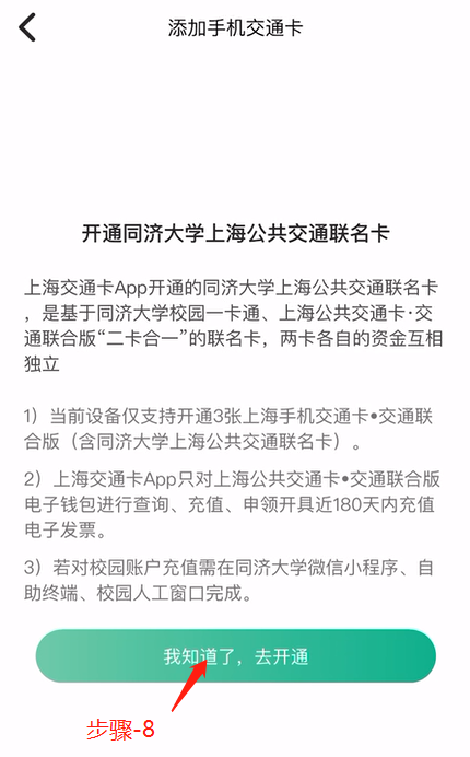2.苹果iOS系统终端支持最多支持3张NFC虚拟卡,已有3张将需将其中一张退卡,且仅能开通1张同济联名卡;iCloud账户云端没有余额负值的上海公共交通卡·交通联合版。