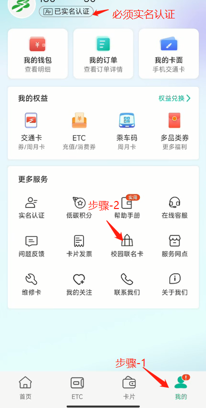 1.请将手机系统更新至iOS 14.5及以上,下载安装最新版本“上海交通卡”App,已安装的,请更新至最新版本,并进行实名登录,请根据图片提示步骤操作。