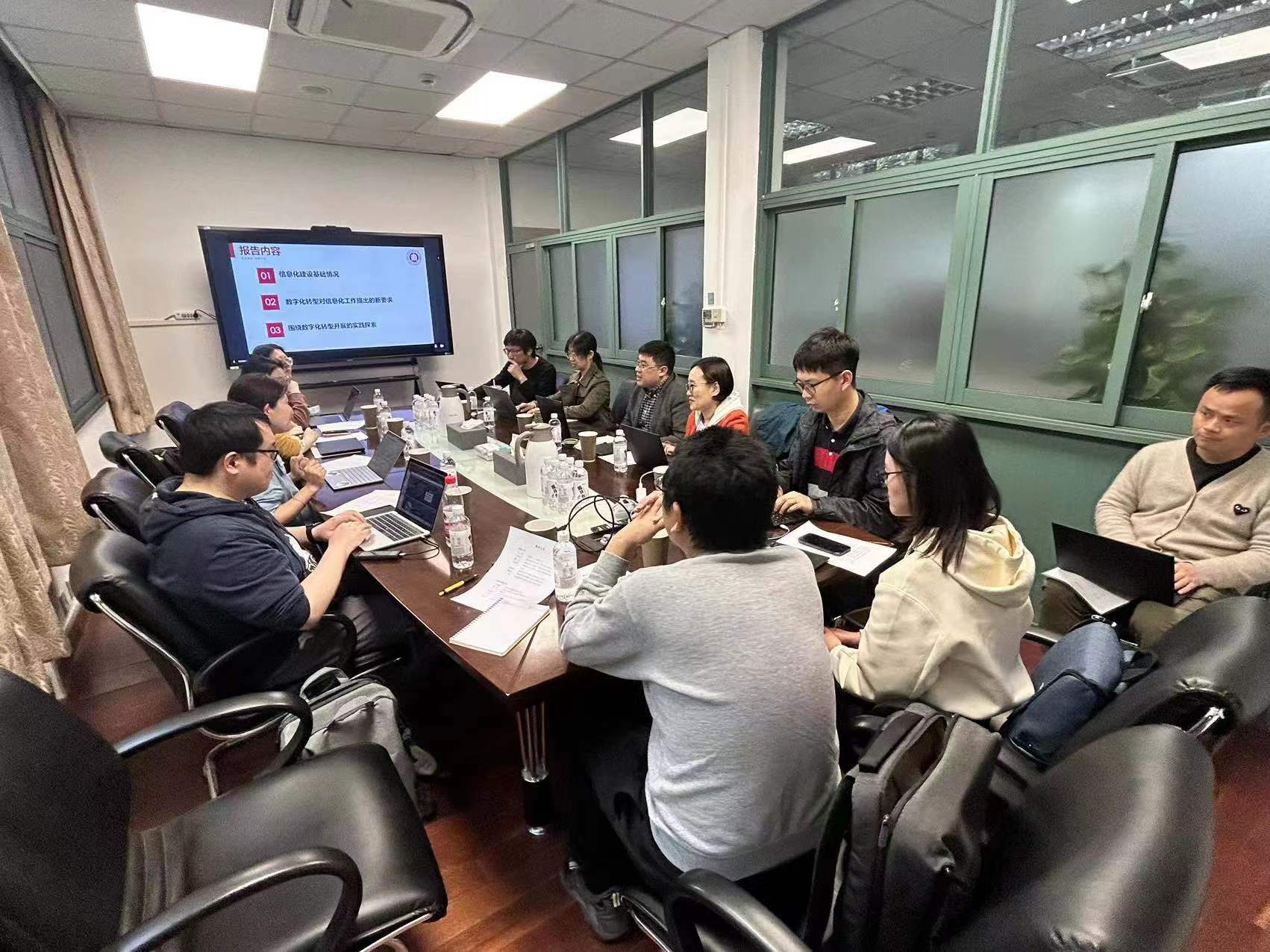 华东师范大学信息化治理办公室主任刘志鹏、副主任陈洁及相关业务部门主管参加交流座谈了调研活动。刘志鹏主任介绍了学校信息化建设的总体情况,以及学校基于数据做服务、变“管理”为“治理”、为师生提供泛在的信息化服务等特色的工作理念和工作方式等。数据中心平台部主管冯骐老师就学校数据治理平台的建设思路以及数据赋能业务的案例做了分享。之后,双方就高校信息化建设和服务工作中遇到的困境、未来数字化转型的建设思路等话题展开了充分的讨论,产生了高度的共鸣。对于自身作为数字化转型关键部门的使命与担当达成了高度一致。通过此次调研活动,充分学习借鉴华东师范大学的宝贵经验,双方互通有无,共同探索信息化建设创新发展,助推学校“双一流”建设。