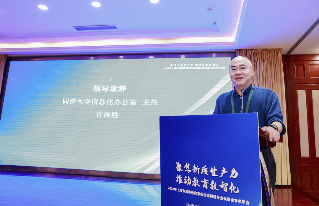 会上,上海市教育委员会信息化工作处处长韩崇虎,同济大学信息化办公室主任许维胜,CERNET专家委员会副主任张凌,上海市高等教育学会校园网络专业委员会主任顾一众分别致辞,对上海高校在信息化建设方面取得的显著成就予以肯定,期待各高校积极交流经验,分享心得,借助新质生产力,促进高校数智化转型。