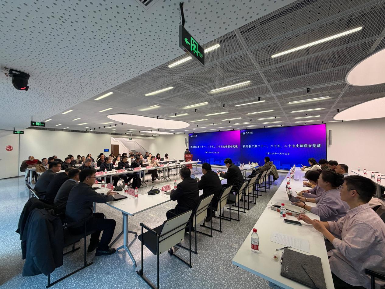 新年伊始,万象更新。为凝聚发展共识、探索转型路径,2026年1月13日,同济大学机关教工第二十一支部(基建处)、第二十五支部(后勤管理与保障处)与第二十七支部(信息化办公室)全体党员齐聚中法中心,联合开展“党建引领聚合力,智慧赋能谱新篇”主题共建活动。活动旨在通过党建引领,促进业务深度融合,共同探讨以人工智能等前沿技术赋能校园基础运行与保障服务,为学校高质量发展注入新动能。